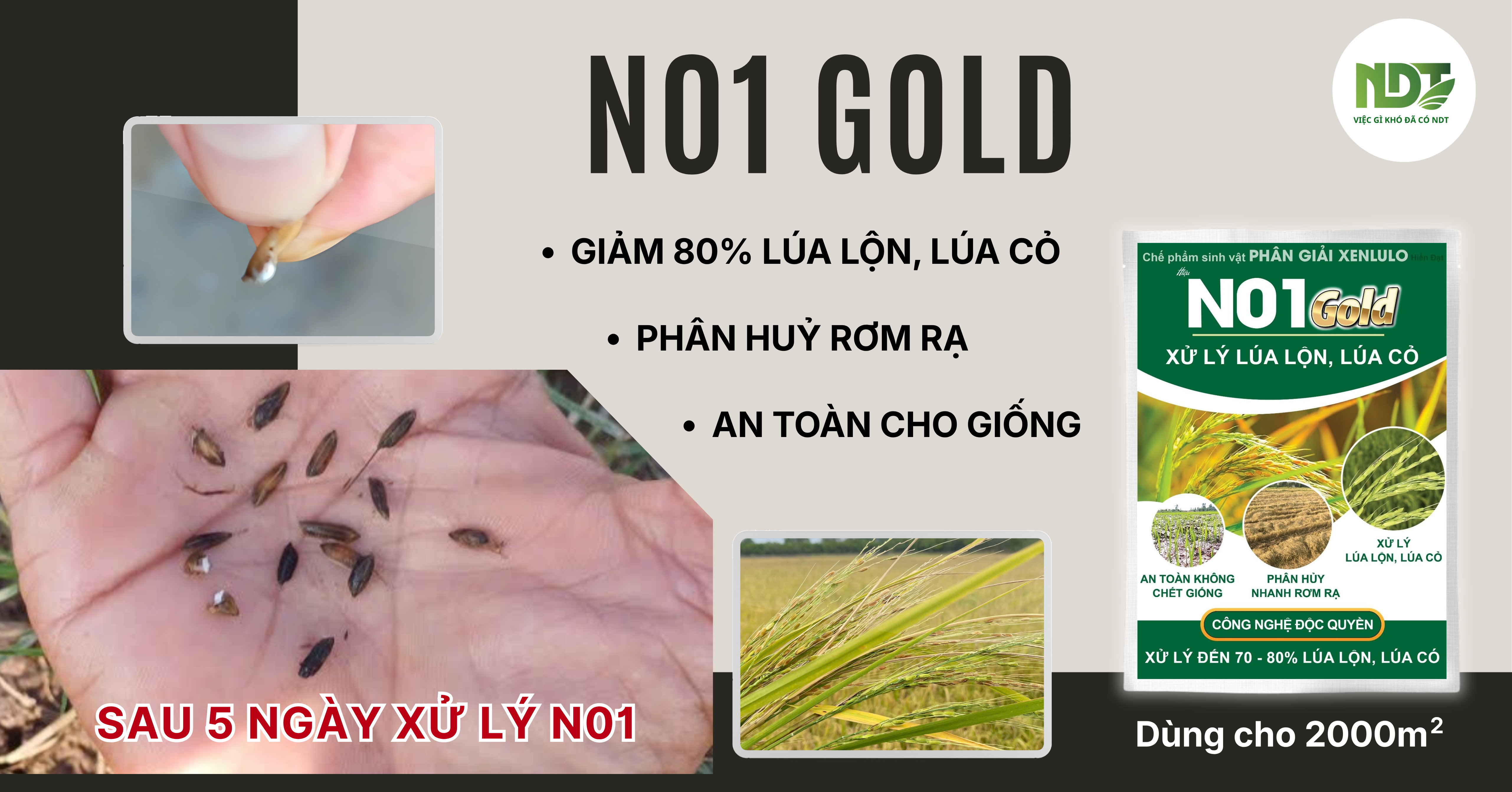 Xử lý rơm rạ sau khi thu hoạch, sau đó cho nước vào ngập gò 5 - 7 cm. Tiến hành phun (rải) đều N01, 500g/ 1000-2000 m2 . Sau 2-3 ngày, cày xới vùi rơm rạ, hạt lúa, hạt cỏ. |